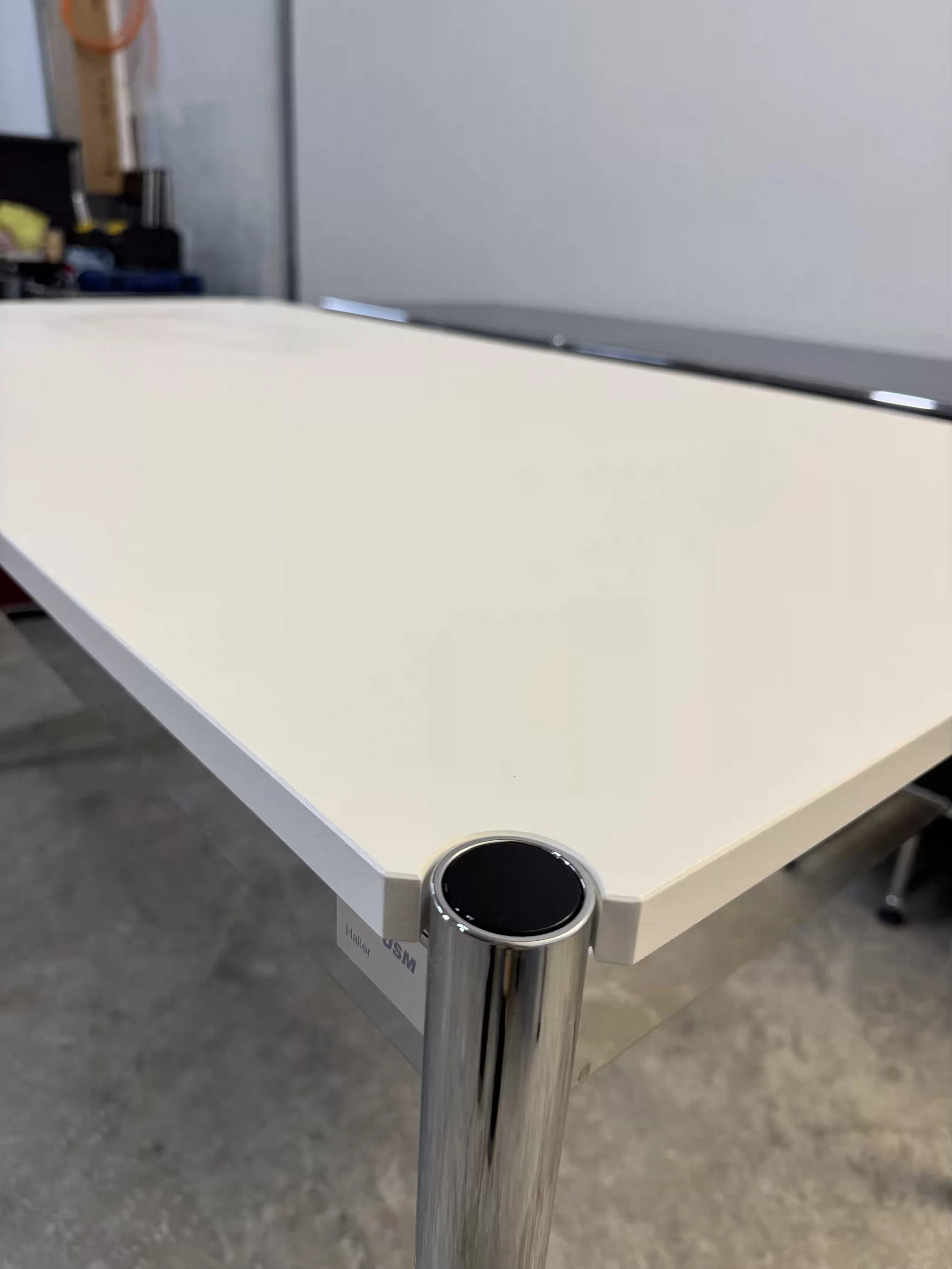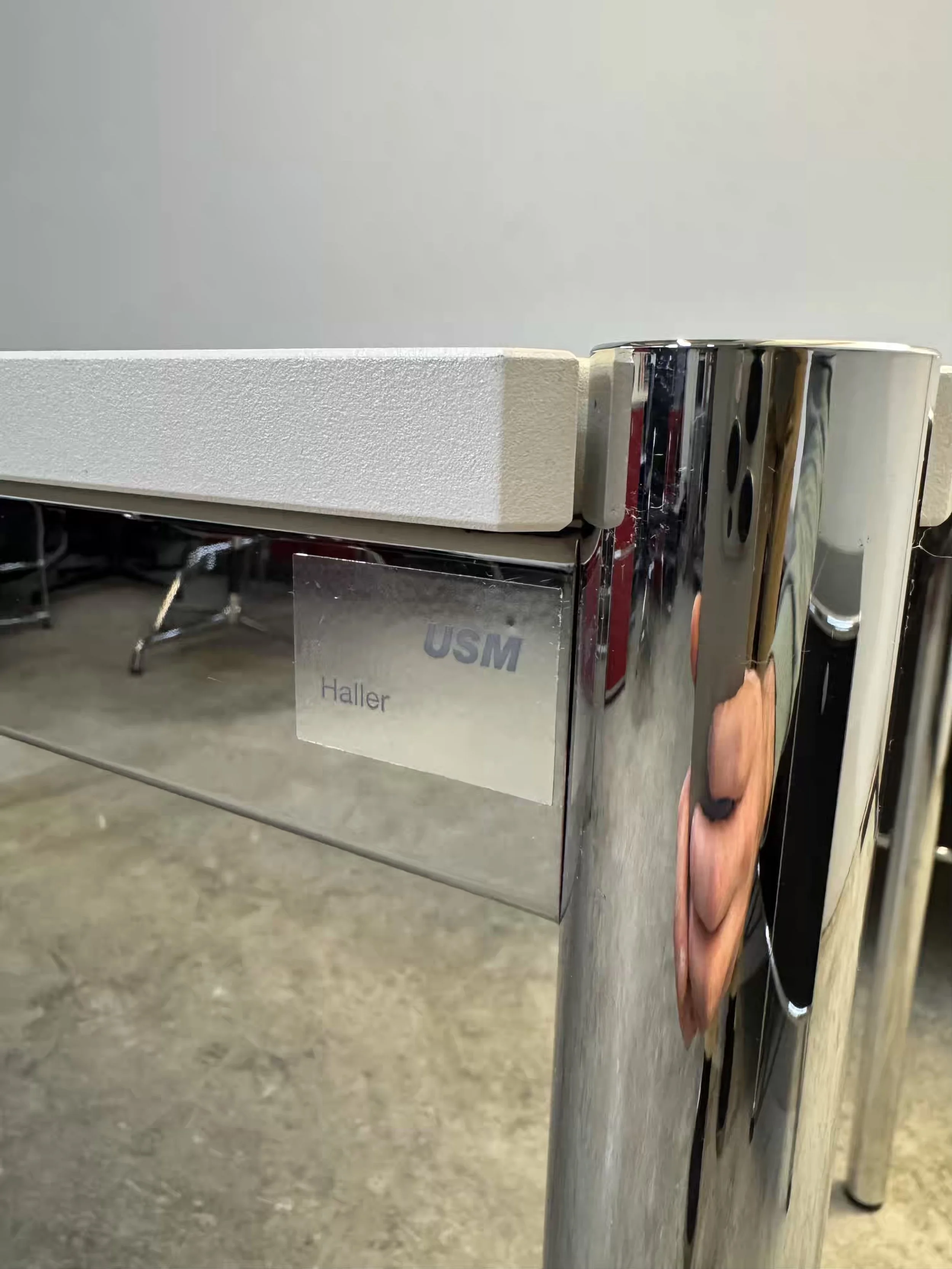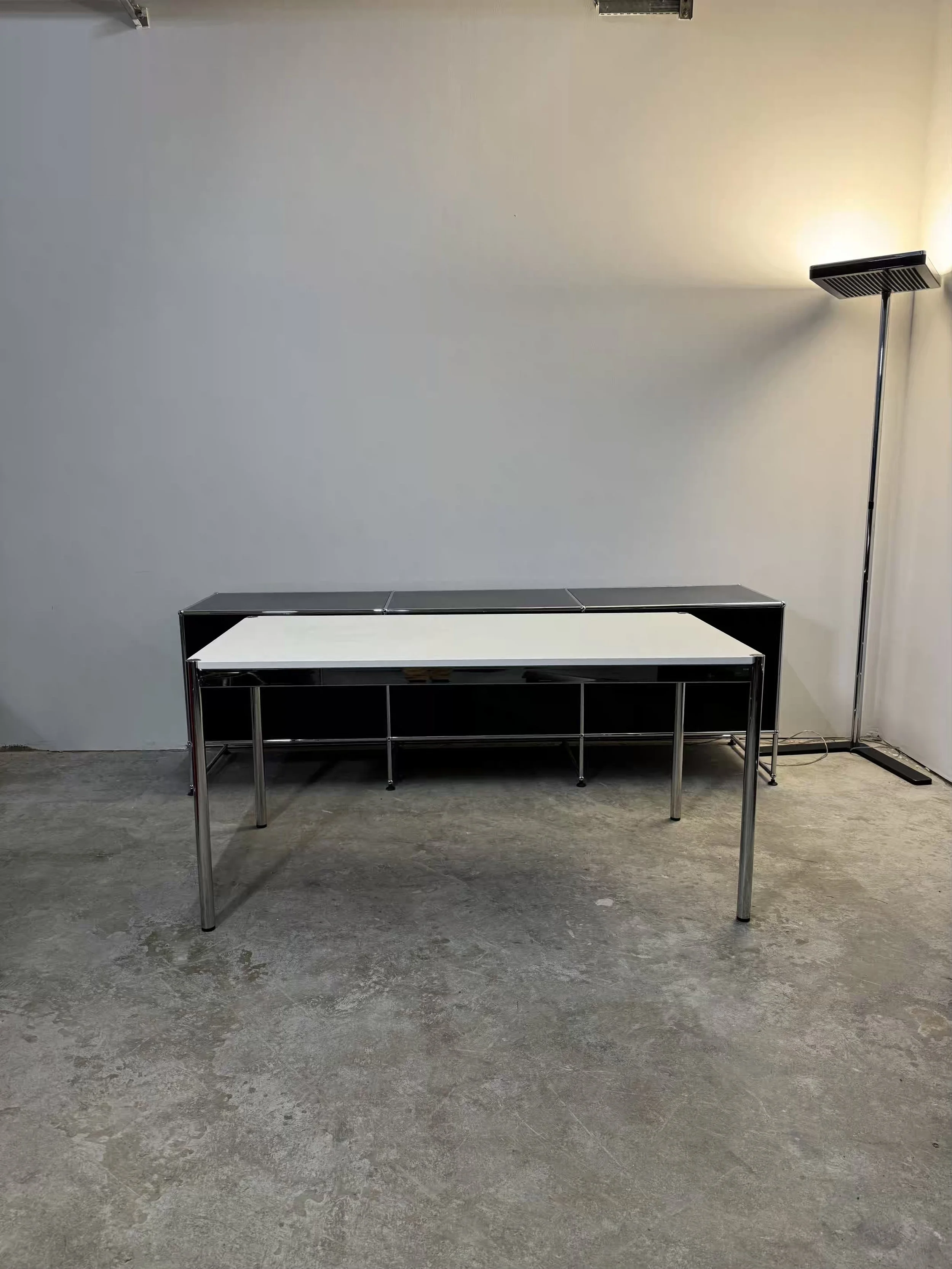 Original USM Haller in der Farbe Reinweiß, mit Chrom-Gestell.